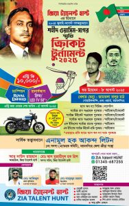 এই আয়োজন করছে জেলার নবীন-প্রবীণ মেধাবী তরুণদের প্ল্যাটফর্ম জিয়া ট্যালেন্ট হান্ট। ইতোমধ্যেই টুর্নামেন্ট ঘিরে ক্রিকেটপ্রেমীদের মাঝে ব্যাপক আগ্রহ ও উৎসাহ লক্ষ্য করা যাচ্ছে।
